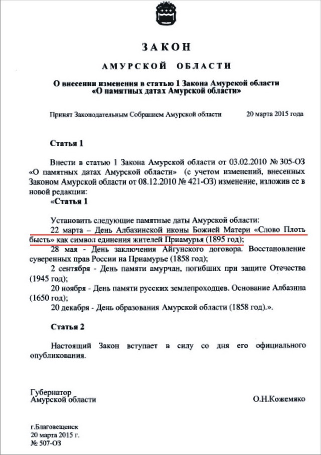 Божией Матери «Слово Плоть Бысть» в Приамурье депутаты